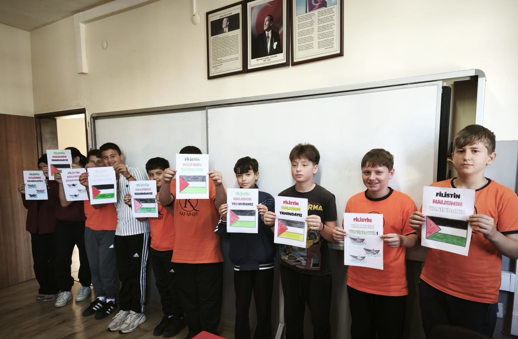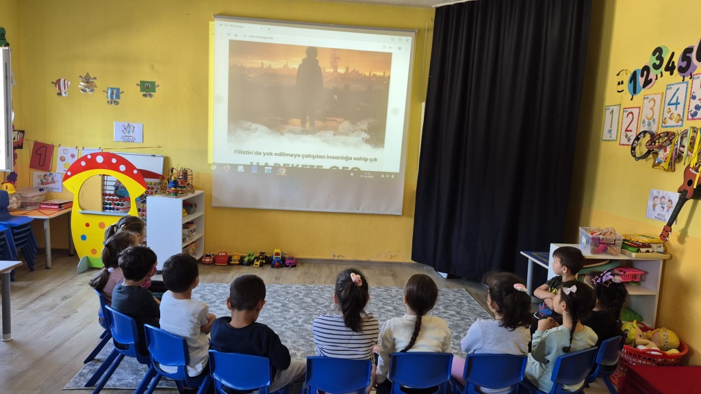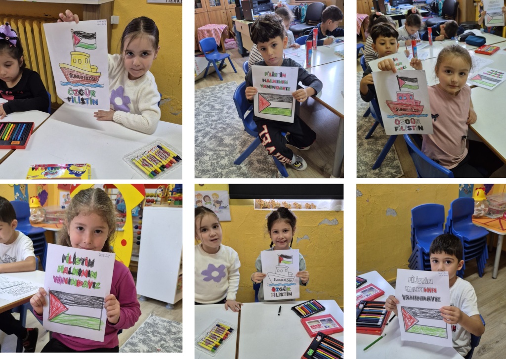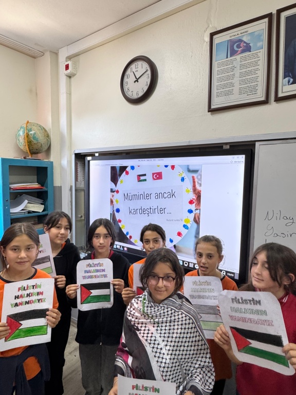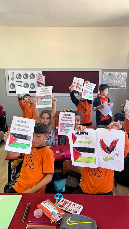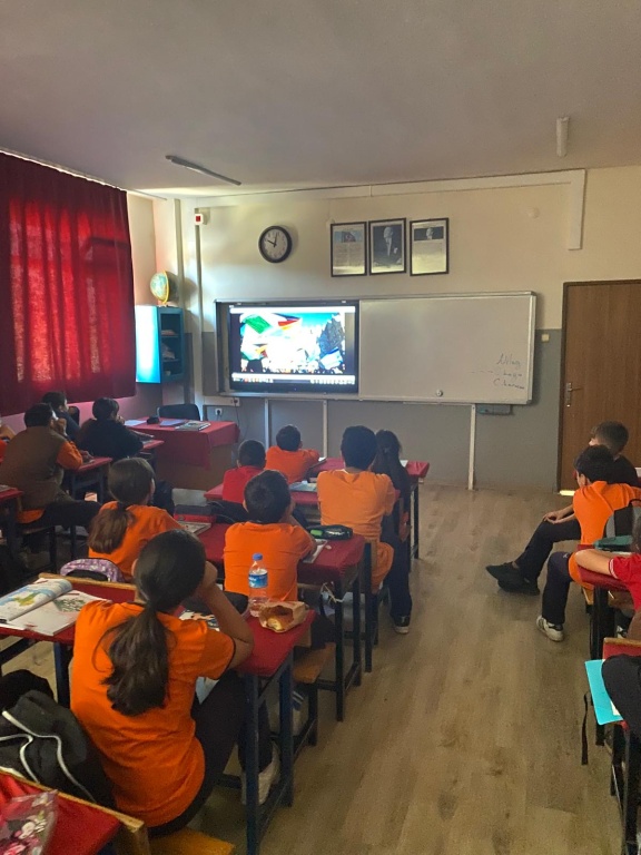 Filistin ve Gazze'de yaşanan acılara duyarsız kalmamak, insanlık onurunu savunma bilincini çocuklarımızda yaşatmak amacıyla 7 Ekim Salı Günü ikinci ders saatinde tüm öğrencilerimize "Filistin Farkındalık Eğitmi" videosu izletildi. Ardından öğrencilerimiz etkinlik yaptılar. Yaptıkları etkinlikleri sınıf panolarında sergilediler.